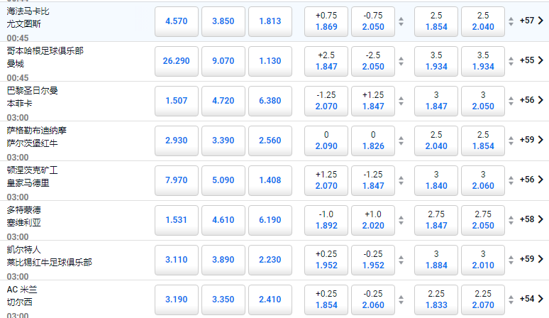 欧洲冠军联赛预测-周三凌晨