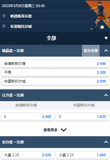 英冠,哈德斯菲尔德主场迎战布里斯托尔城,主队在英冠联赛中排名垫底,还剩下12场比赛。客队在积分榜上排名第14位,如果获胜,他们可能会上升到第12位。平博赔率,主队2.94,客队2.59,平局3.32。我们预测,进球小2.25。