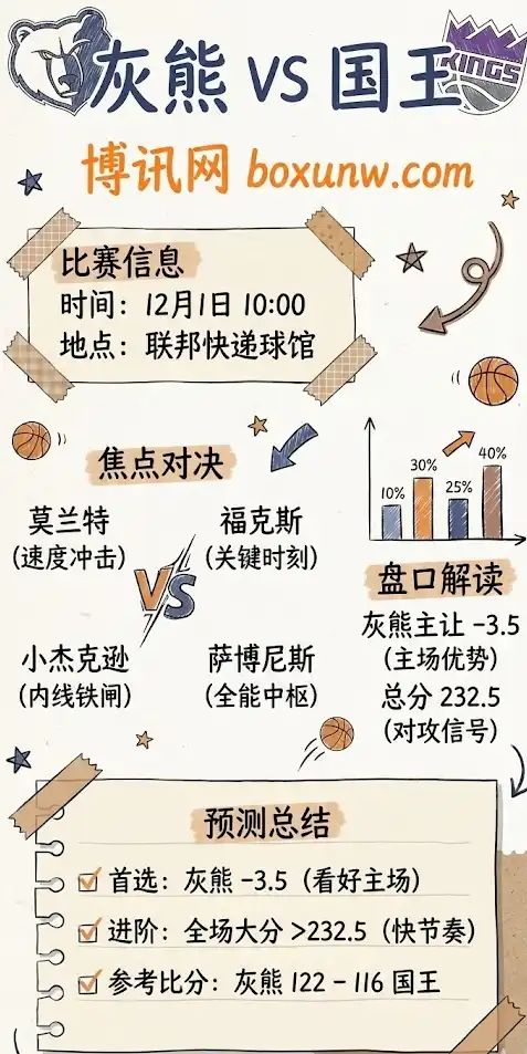 - 比分预测参考: 灰熊 122 – 116 国王