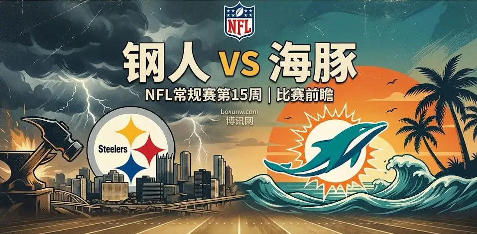 北京时间12月16日09:15,匹兹堡钢人坐镇Acrisure Stadium迎战迈阿密海豚,这场周一夜赛对两队的季后赛希望都很关键。钢人目前战绩7胜6负,在分区竞争中仍握有主动;海豚6胜7负,容错空间已不多,想继续追赶外卡席位,客场抢胜几乎是“必须完成的任务”。