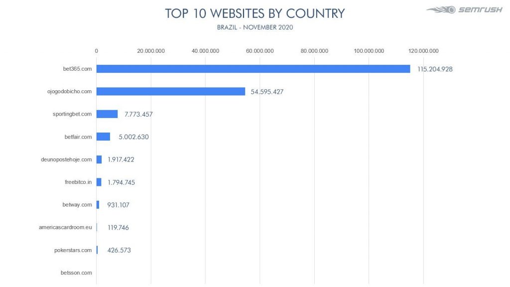 而对于拉美市场,bet365.com率领巴西地区排名有1.152亿用户11月份同比下降4.1%前一个月。其次是Ojogodobicho.com,增长了5.5%,接待了5459万用户。仍然遥遥领先,sportingbet.com以7.7百万名列第三,比10月份增长了32.7%。