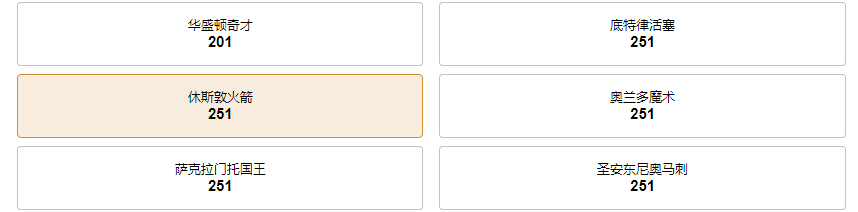 NBA2022-23赛季,休斯顿火箭队夺冠的赔率为251